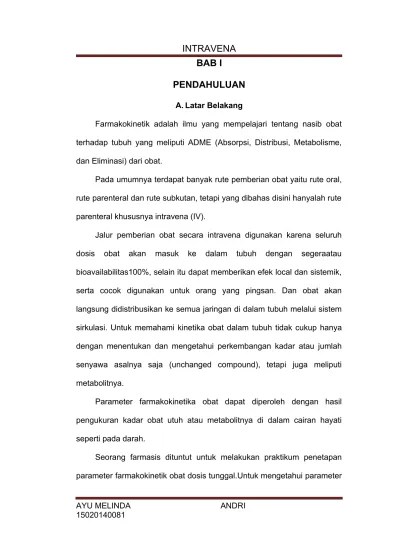 B) menghitung aturan dosis yang tepat untuk setiap individu (dosage regimen. Hasil penelitian menunjukkan bahwa parameter farmakokinetika bupivakain untuk 7 pasien hamil normotensi, dengan perhitungan model non kompartemen yaitu berturut . Tiga parameter farmakokinetika yang paling penting adalah klirens,. Contoh soal sampel uji dan inovator. Teofilin adalah salah satu contoh obat yang dapat menjelaskan dengan baik hubungan.